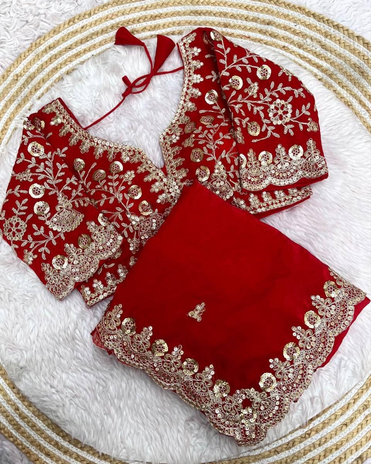 Work: 5mm Sequins With Jari Dori Embroidery Work With Cutwork Border & Sequins Butti in Pallu With Body Part