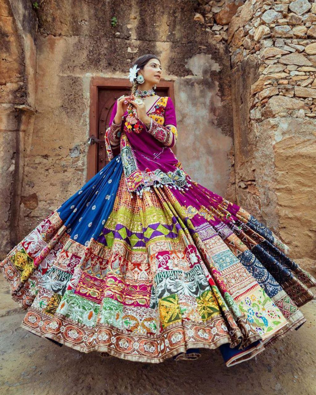 Navratri Special Green-Purple Butter Silk Multi Printed Lehenga Choli With Dupatta