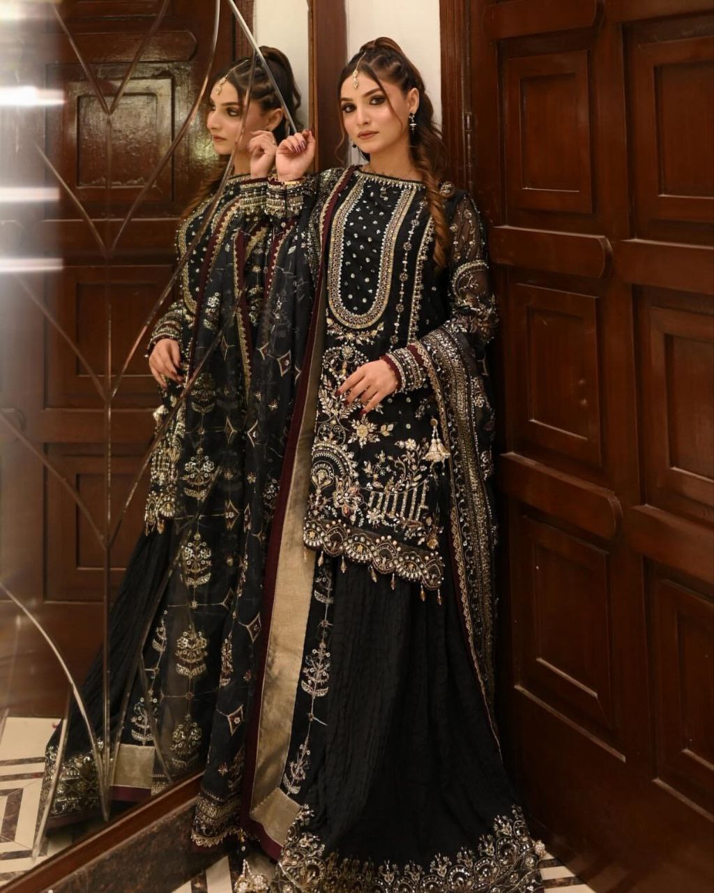 Work: Fancy Embroidery Thread Work, Sequins Work With Rivet Moti Work
