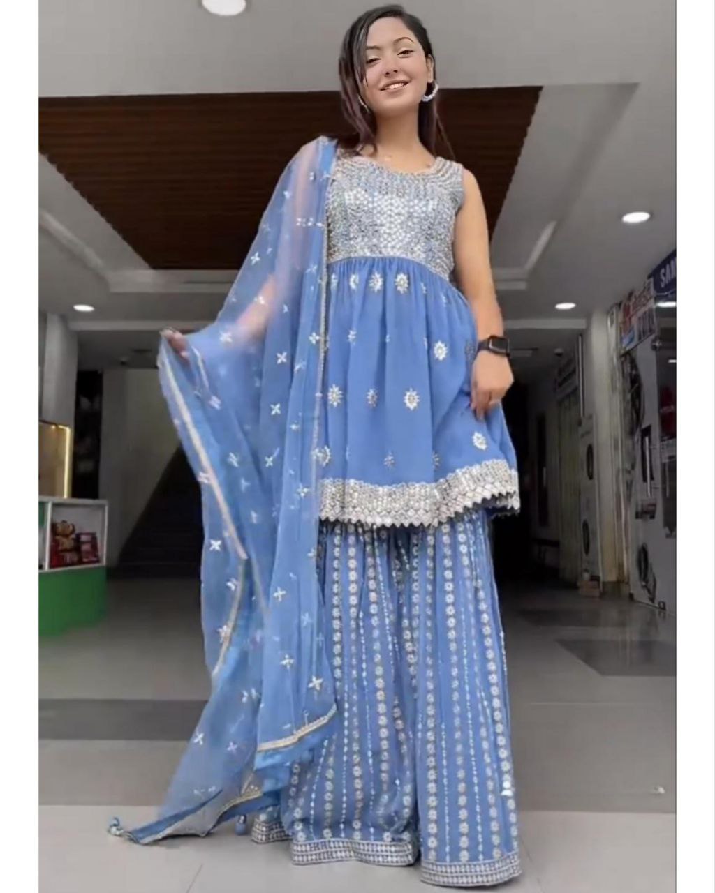 Top Fabric: Heavy Georgette Embroidery And Sequence Work