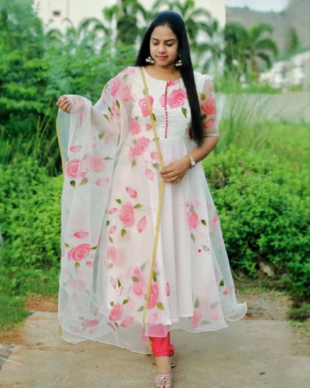 Anarkali Fabric: Heavy Pure Soft Organza Silk Print