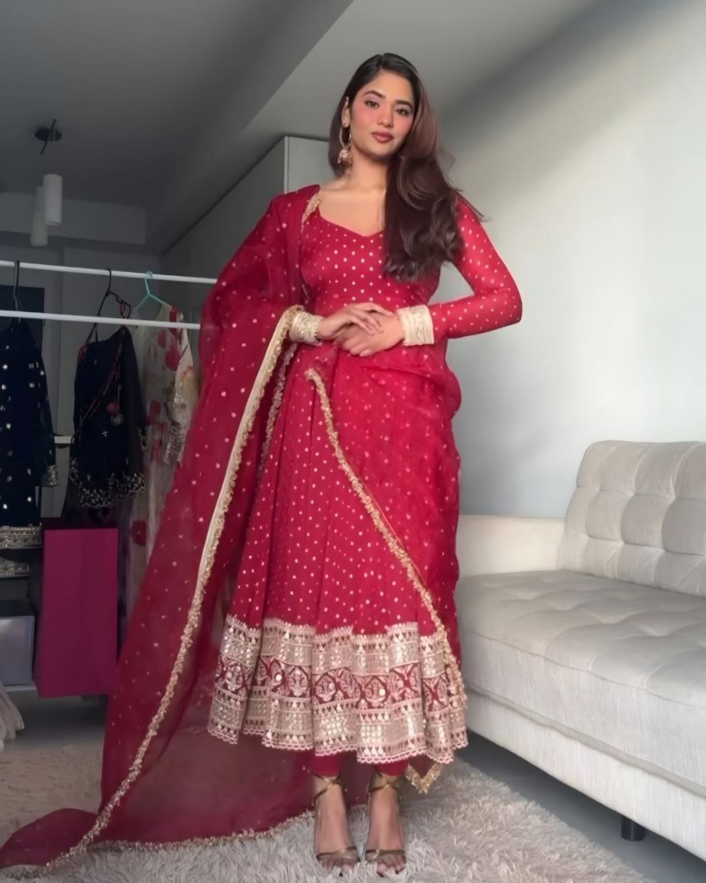 Red Georgette Embroidery Work Anarkali Suit With Dupatta